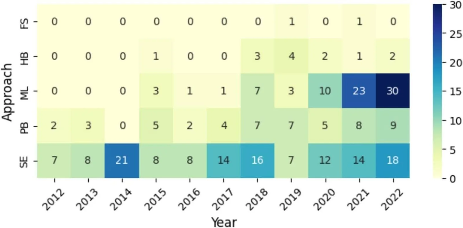 Most studies rely on freely available satellite imagery such as MODIS, Landsat, and Sentinel-2. Vegetation indices like NDVI are widely used to track crop growth, often alongside rainfall and temperature data. Figure 7 illustrates how the use of different modeling approaches has evolved across the literature over time.